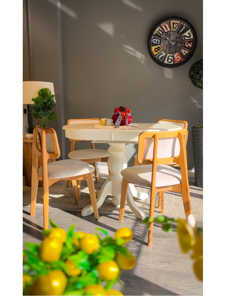 Zarif hatlara sahip oval açılır masa takımımız, fonksiyonel yapısıyla modern yaşam alanlarına şıklık katıyor. 100 cm ölçüsündeki masa, açıldığında 130 cm’ye ulaşarak kalabalık sofralar için ideal hale gelir. Alt gövdesi dayanıklı ıhlamur ağacından üretilmiş, üst tablası ise kayın kaplama ile tamamlanmıştır. Beyaz lake ipek ve komple siyah renk seçenekleriyle üretilen masa, dekorasyon tarzınıza uyum sağlar. Takımda yer alan 4 adet Ziyon sandalye ise kayın ağacından üretilmiş olup, hem estetik hem de konfor sunar. Yemek alanlarınıza zamansız bir şıklık katmak için mükemmel bir tercih.