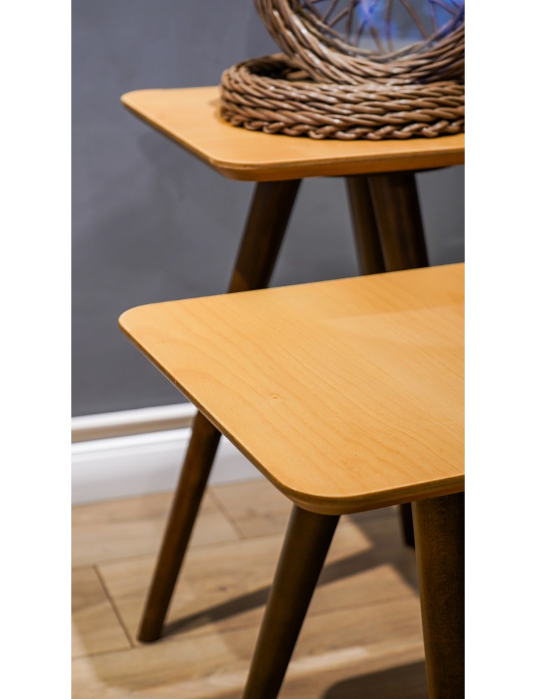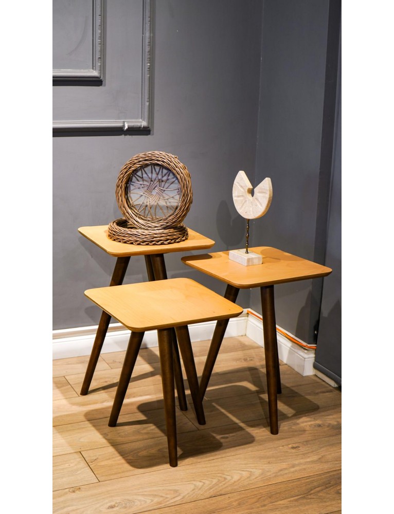 Her tarafı kayın ağacından oluşmaktadır. Üzeri doğal renk. Ayakları ceviz boyalıdır. Evinizin dekorasyonuna şıklık ve işlevsellik katacak 3’lü Square Sehpa, modern tasarımıyla her yaşam alanına uyum sağlar. Dayanıklı malzemeden üretilen bu sehpa seti, hem salonlarda hem de oturma odalarında pratik kullanım sunar. Farklı boyutları sayesinde iç içe geçerek yer kaplamaz, ihtiyaç duyduğunuzda kolayca açılarak ekstra kullanım alanı oluşturur.